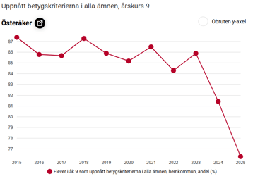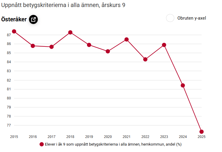 Vi älskar Österåker, men efter 28 år av Moderat styre är vi en kommun som sticker ut på flera sätt, både till det bättre och till det sämre. Vi må ha landets lägsta skatt, men vi är även den kommun i landet som lägger minst pengar per barn i förskolan* och 25 % av våra elever lämnar grundskolan utan fullständiga betyg*.